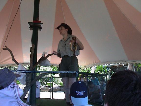 Puis on est allé voir un show avec des serpents et on a pu en toucher.